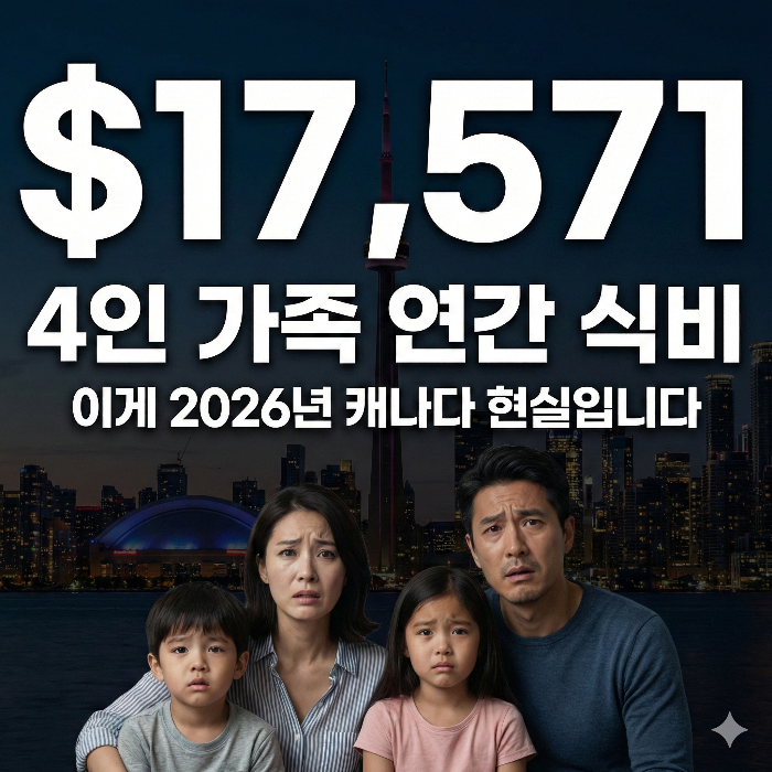 2026년 캐나다 소비자물가지수(CPI)는 2.3%로 겉으로는 안정된 것처럼 보입니다. 하지만 정작 우리가 매일 사는 식료품은 4~6% 추가 상승, 4인 가족 연간 식비는 $17,571에 달할 전망입니다. 주거비, 통신비, 교통비까지 더하면 숫자는 더 커집니다.